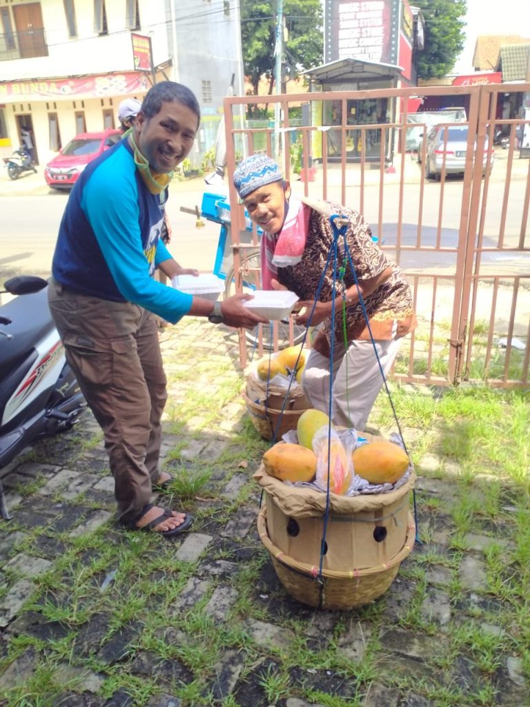 Seperti hari ini ada Penerima Nasi Box berkah, bang Oman namanya. Seorang penjual kursi bambu yang kebetulan lewat depan kantor Laz Nahwa Nur. Ia menjajakan dagangan kursi bambu dengan cara dipikul. Berjalan menyusuri jalanan, dan masuk ke kampung dan komplek komplek.